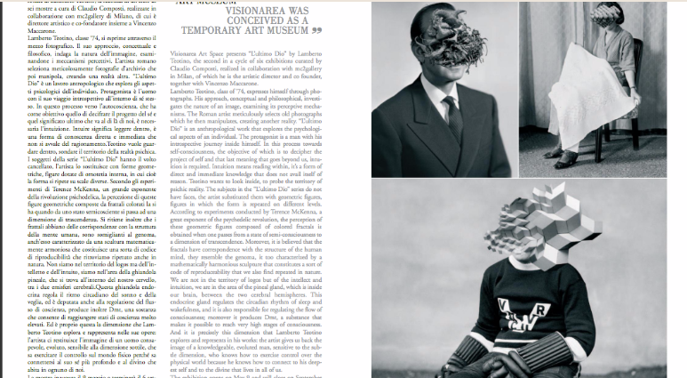 Lamberto Teotino, classe ‘74, si esprime attraverso il mezzo fotografico. Il suo approccio, concettuale e filosofico, indaga la natura dell’immagine, esaminandone i meccanismi percettivi. L’artista romano seleziona meticolosamente fotografie d’archivio che poi manipola, creando una realtà altra.
